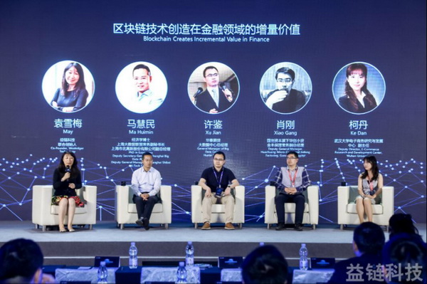 区块链技术在金融领域如何应用?能带来哪些突破?又将创造哪些价值?大会的圆桌论坛一上,益链科技联合创始人袁雪梅与市北高新副总裁马慧明、华泰期货大数据中心总经理许鉴、国创资本旗下华创小贷金丰保理常务副总经理肖刚、武汉大学电子商务研究与发展中心副主任柯丹就“区块链技术创造在金融领域的增量价值”展开了探讨,金融界、学术界的思想碰撞带来了关于区块链技术的诸多思考与展望。