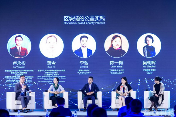 随后,以“区块链的公益实践”为主题的圆桌论坛二带来了区块链应用的另一种视角,上海交通大学第三部门研究中心副主任卢永彬与SEE西南中心秘书长萧今、壹基金秘书长李弘、万科基金会秘书长陈一梅、正德慈善理事长吴朝晖展开了慈善领域的发展方向的探讨和对区块链技术在该领域的应用前景的憧憬。